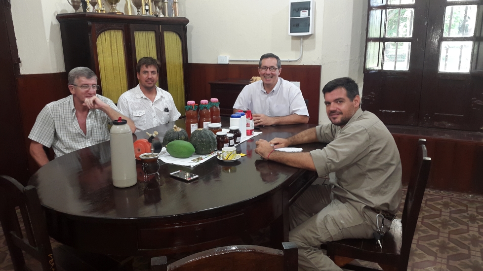 Estudiantes de 1er. y 2do. Año dieron inicio al Ciclo Lectivo 2016 en las aulas de la escuela. ![]() ![]() ![]() ![]() Carmelo H. de Biasi ![]() Al día 17 de marzo del corriente año, el director de la escuela Ing. Agr. Leopoldo Payes junto con el Rector del Instituto Superior de Musica Alejandro Julio Daniel Bendersky acordaron coordinar actividades recíprocas entre ambas instituciones y la confeccion de un acuerdo de cooperación de trabajo. ![]() El señor Lagraña Bernardo Rubén, agrotécnico egresado de la promoción 1977, visitó las instalaciones de la escuela. Actualmente se desempeña como productor bananero en la provincia de Formosa. ![]() Inicio de actividades para la implantación de especies forestales en módulos desmostrativos en el marco del acuerdo de trabajo entre la Dirección de Recursos Forestales y la ERAGIA. El curso estuvo a cargo del Ministerio de Producción de la Provincia el día viernes 19 y sábado 20 en el cual participaron estudiantes de 5to. año de la escuela. Inaugurandosé las instalaciones del CETEPRO. ![]() ![]() Estudiantes de la cátedra Terapéutica Vegetal de la Facultad de Ciencas Agrarias, realizaron trabajo práctico en el lote de maíz de la escuela. La ERAGIA recibió la visita de las autoridades de la Universidad Nacional del Nordeste, Rectora, Prof. María Delfina Veiravé, Secretaria General Académica Mgter. María Viviana Godoy Guglielmone y el Ing. Horacio Raúl Guinea. La visita se realizó en el marco del proyecto de refacción del sector dormitorios y sanitarios; luego compartieron con la Vice-Directora Ing. Agr. María Agueda Cundom y el Regente Nestor Alcides Quarín un almuerzo en el comedor de la escuela.